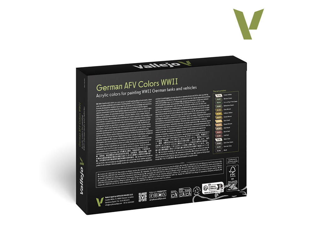 Vallejo Set Afv Color series 70255 Couleurs des véhicules blindés allemands de la Seconde Guerre mondiale 16x18ml