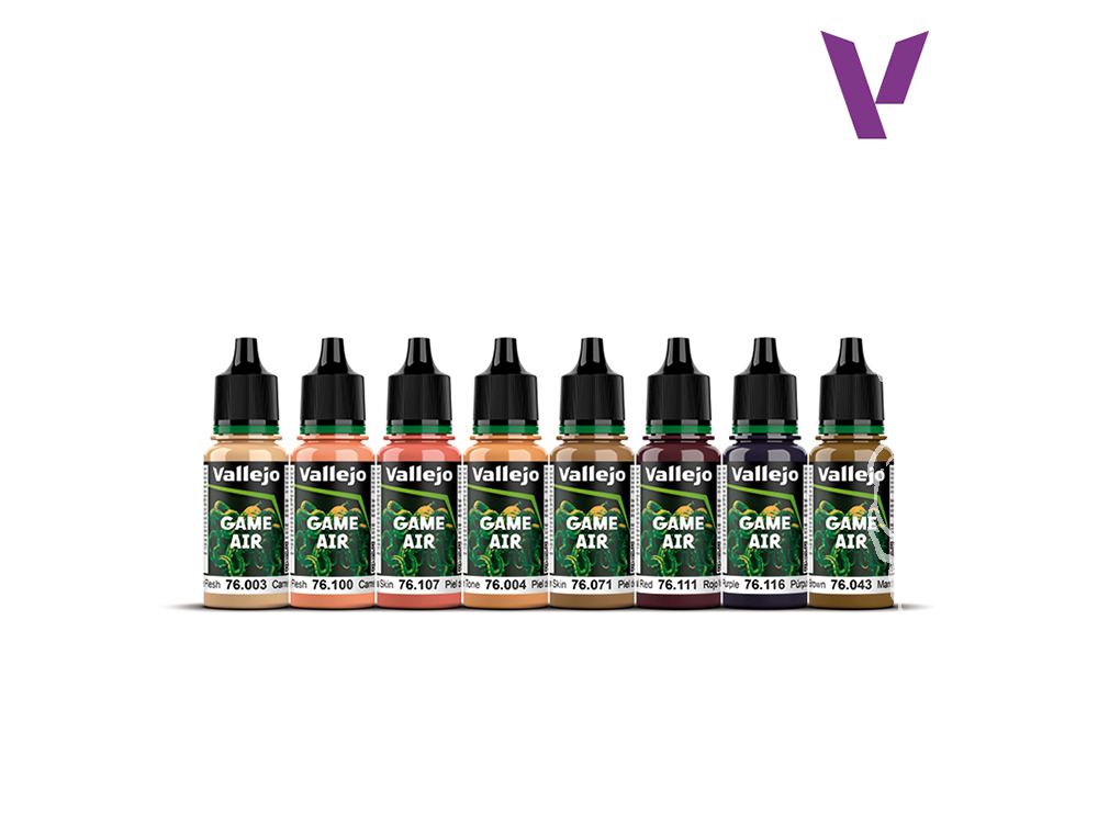 Ce nouveau coffret comprend une sélection de couleurs renouvelée, issue de la nouvelle formule de la gamme Game Air. Conçue pour faciliter la peinture de peaux humaines dans les figurines de fantasy, de wargames et de science-fiction, elle offre des transitions fluides, des tons réalistes et une approche professionnelle.