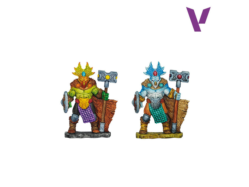 Une sélection conçue pour peindre tous les éléments de la figurine : peau, écailles, vêtements, métaux et gemmes. Elle contient une figurine exclusive, pré-assemblée et apprêtée en blanc, prête à peindre ; un pinceau synthétique de haute qualité ; et un guide de peinture étape par étape illustrant deux schémas de couleurs différents.