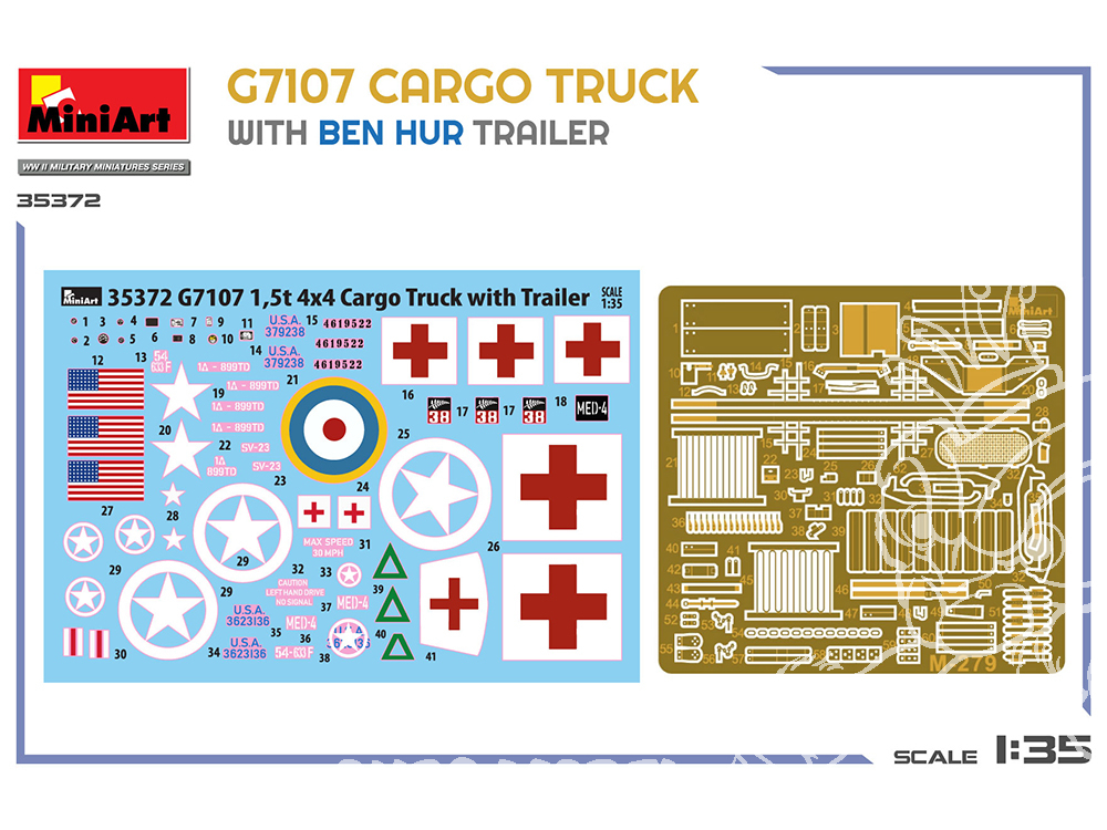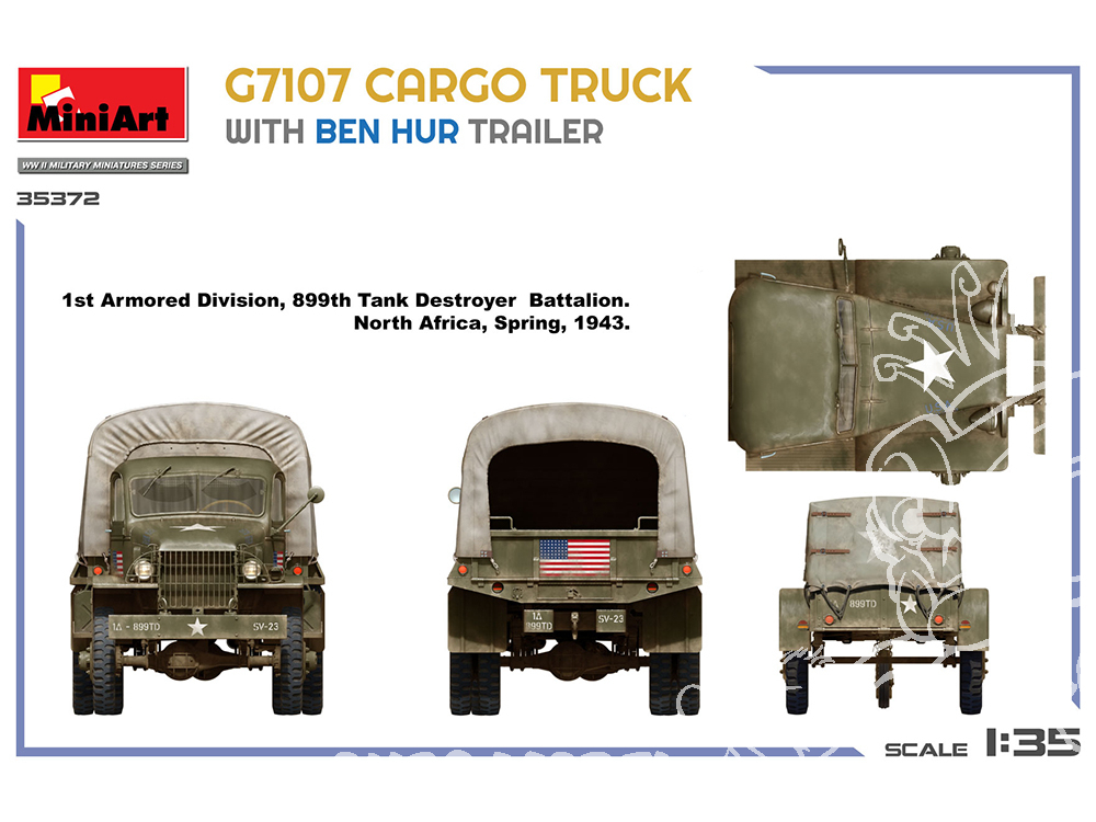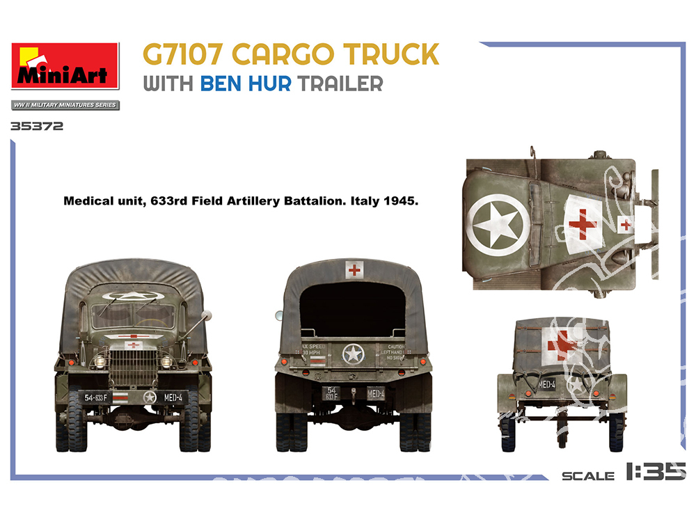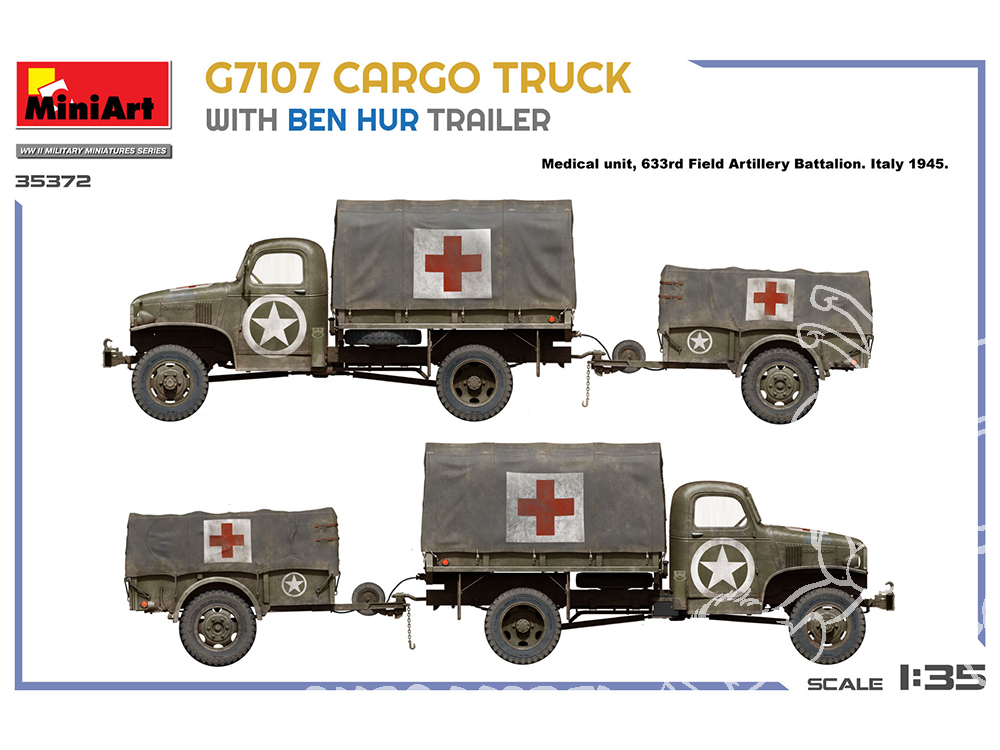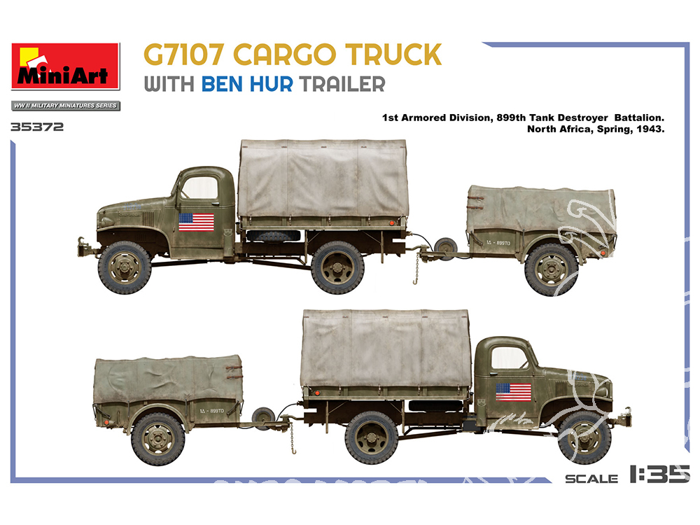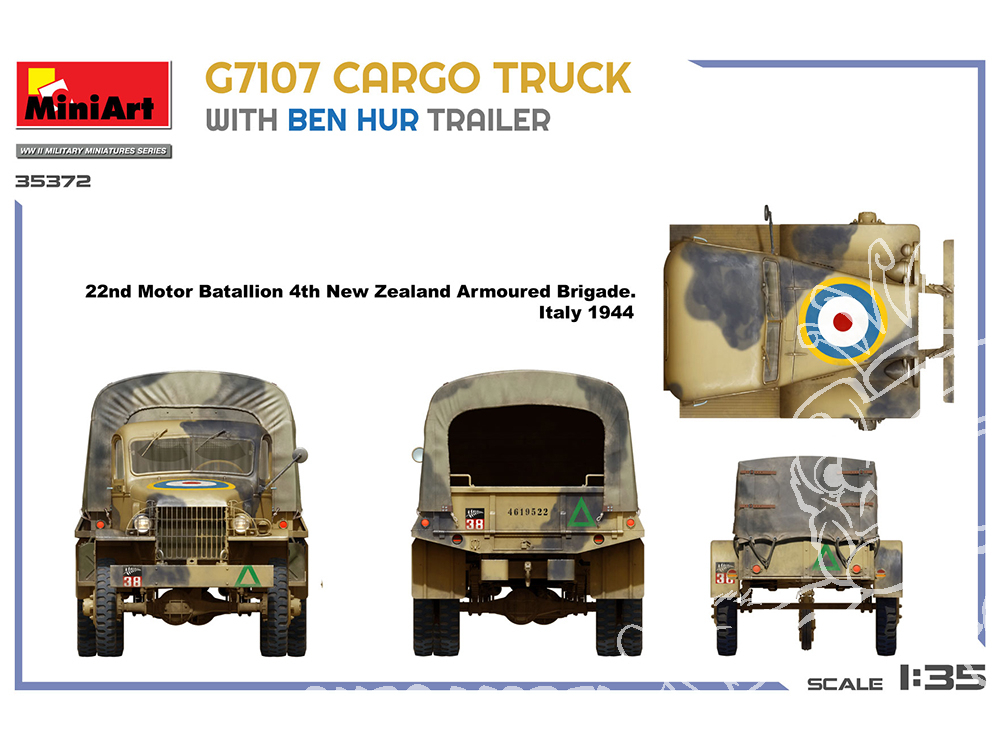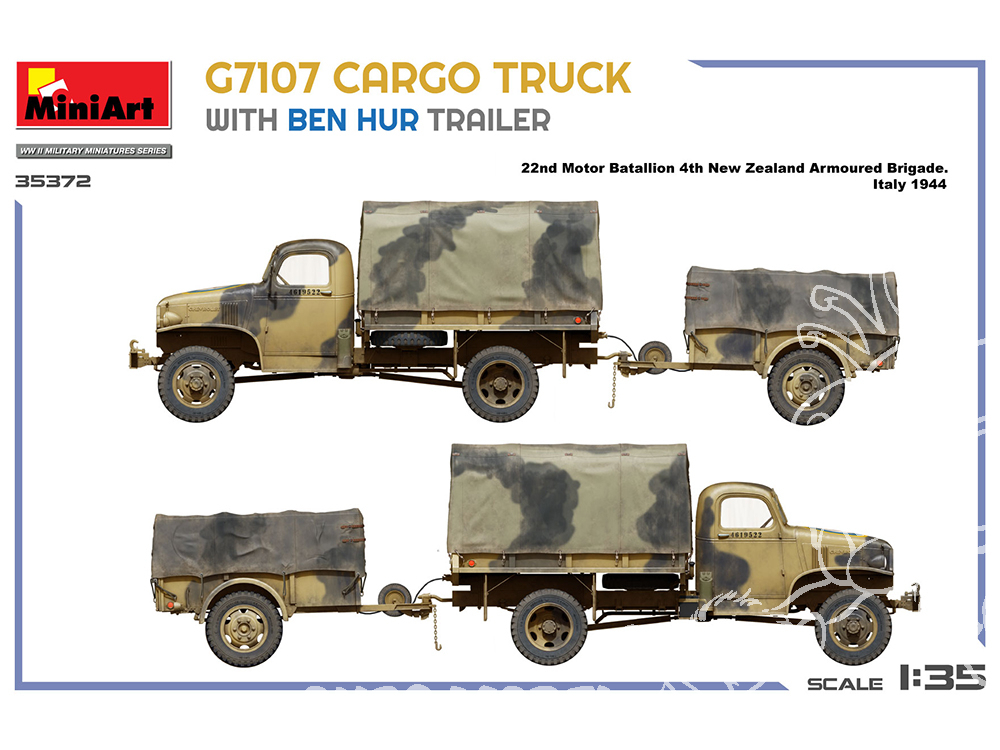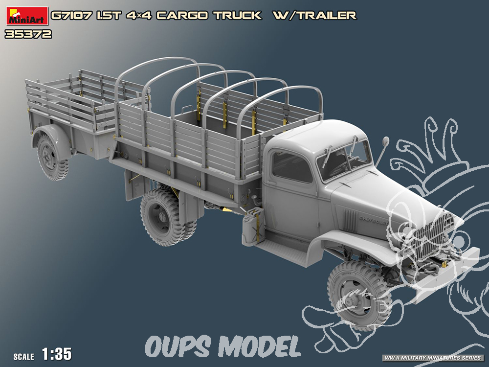 Un camion cargo G7107 détaillé de 1,5 tonne avec sa remorque emblématique « Ben Hur », idéal pour les scènes de la Seconde Guerre mondiale en Afrique du Nord ou en Europe. À construire seul ou pour un diorama de convoi.
