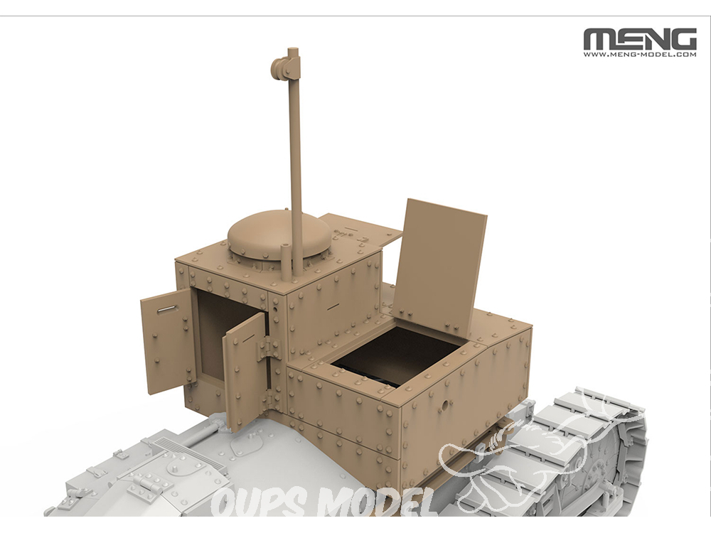 Cette maquette MENG SS-021 au 1/35 du FT T.S.F. français, version radio, mesurera environ 142 mm de long, 52 mm de large et 94 mm de haut une fois assemblée. Ce kit comprend des pièces en photodécoupe de haute qualité. Le compartiment radio et le porte-câbles sont fidèlement reproduits à l'aide de pièces en résine.