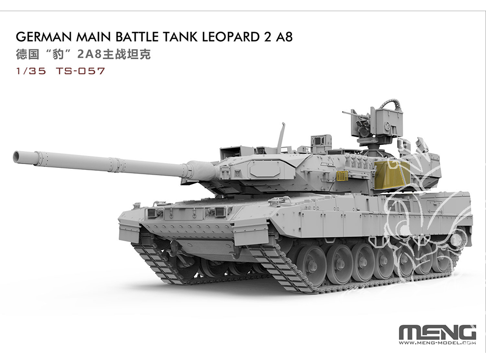Version proposée en 2023, dérivée du modèle spécifiquement développé pour la Hongrie (2A7HU) en 2020. Il intègre nativement le système de protection actif EuroTrophy, développé par une coentreprise rassemblant l’israélien Rafael, concepteur du Trophy, l’américain General Dynamics Land System ainsi que l’allemand KMW. La tourelle est également protégée contre les armes à sous-munitions. L’optronique et la vétronique du nouveau char ont aussi été sensiblement modernisées, par exemple la fusion des canaux vidéos et infrarouges disponibles pour l’ensemble de l’équipage, permettant de lui offrir une bien meilleure perception de l’environnement dans lequel il évolue. Une unité auxiliaire d’une puissance de 20 kWh a été installée, permettant à l’ensemble des systèmes du blindé de fonctionner même moteur coupé. Les protections actives sont améliorées (dispositifs électroniques pour contrer les menaces des missiles antichars et les engins explosifs improvisés, ainsi que la protection passive (blindage composite amélioré). Le Leopard 2A8 ne serait qu’un marchepied dans le développement du Leopard 2AX, qui devrait être disponible en 2025-2026. Il a été adopté par les armées allemande, norvégienne et tchèque. L'Italie renonce à son acquisition en 2024 pour une question de partage industriel avec Leonardo et de demandes de spécificités non acceptées par KNDS. En octobre 2024, les Pays-Bas en commandent 46, six en option. Premier exemplaire présenté au public le 19 novembre 2025.