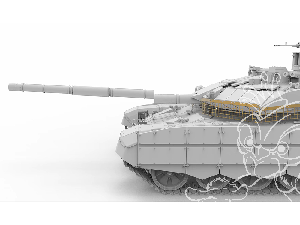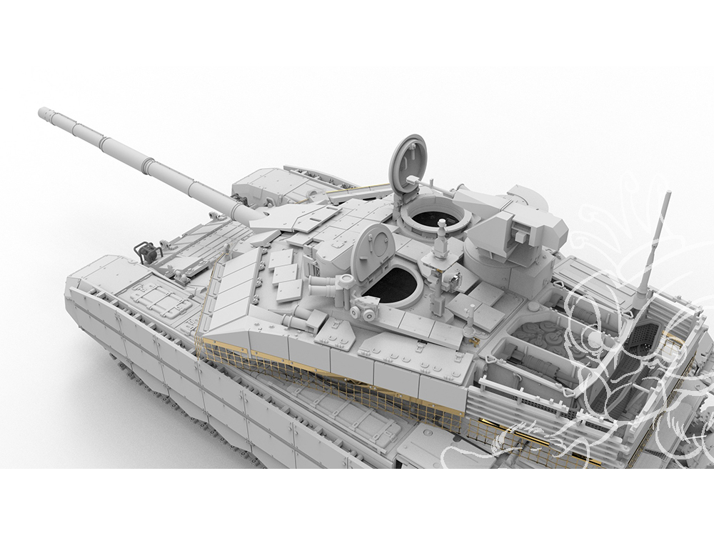 Sur le T-90M, le Kontakt-5 présent sur le glacis et les flancs du char est remplacé par du blindage réactif explosif Relikt.