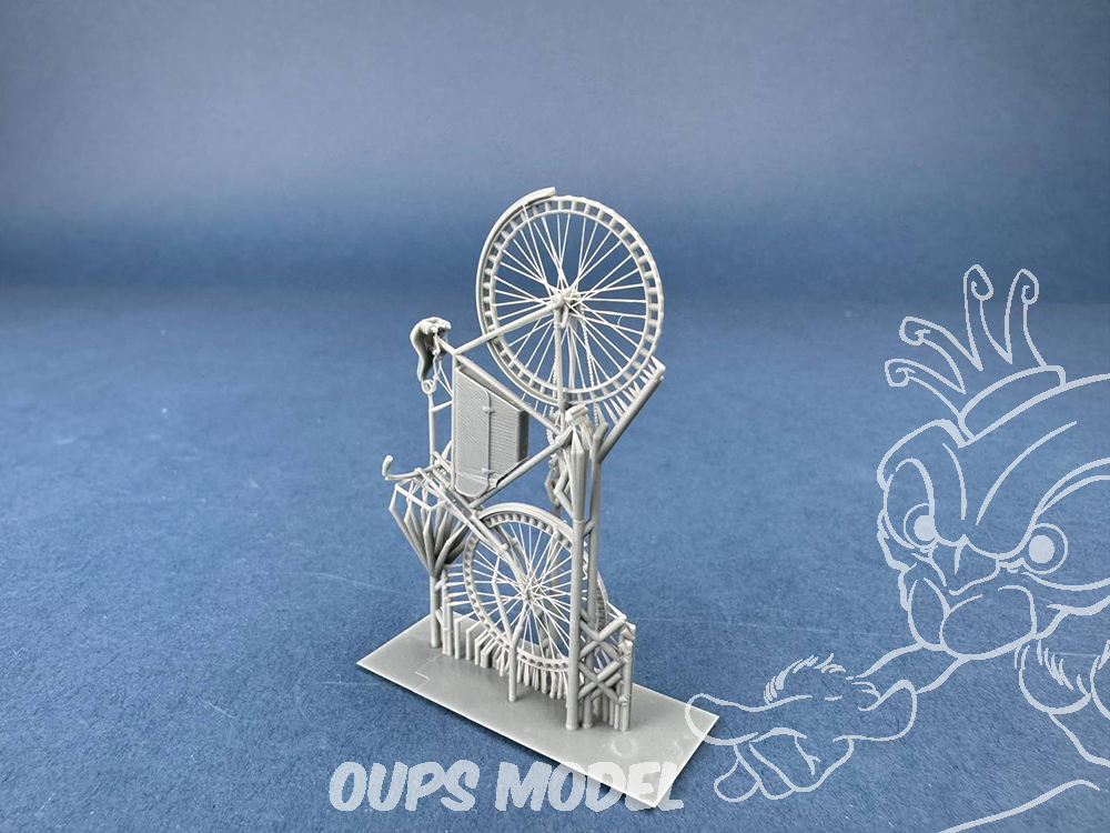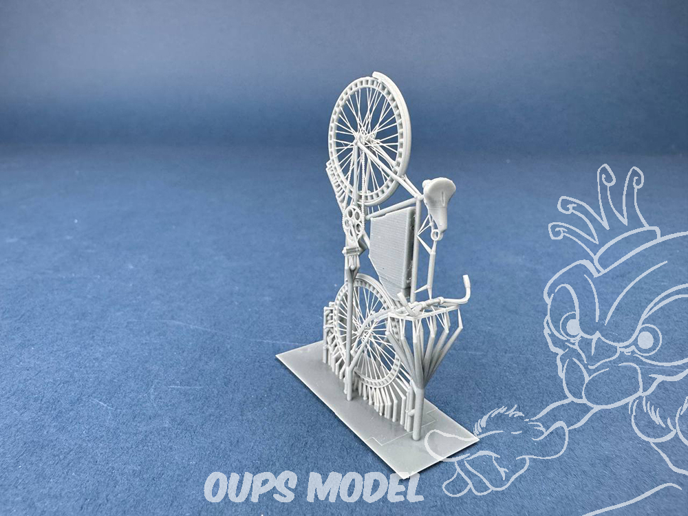Modèle imprimé en 3D du vélo allemand Victoria « Modèle 12 » (1905), équipé de roues à ressort et d’une sacoche. Cette version de fin de guerre fut utilisée par l’armée allemande durant les dernières années de la Première Guerre mondiale et était réputée pour sa fiabilité et sa conception pratique pour les messagers et les éclaireurs.
