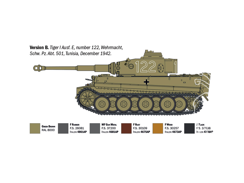 Le Panzerkampfwagen VI Ausf. Tiger I est sans conteste l'un des chars les plus célèbres de la Seconde Guerre mondiale. Il fut conçu pour doter les divisions blindées de la Wehrmacht d'un char lourdement blindé et armé, en complément des chars moyens Panzer III et Panzer IV, plus répandus et désormais incapables de contrer efficacement les chars ennemis. Les premières versions furent engagées au combat fin 1942 sur le front de l'Est à Leningrad et sur le front africain lors de la campagne de Tunisie début 1943. Son armement principal était constitué du fameux et redoutable canon antichar à long tube de 88 mm KwK 36 L/56. Monté dans la tourelle et protégé par un épais blindage de 120 mm, il était capable de percer le blindage de n'importe quel véhicule ennemi de l'époque, même à longue distance.
