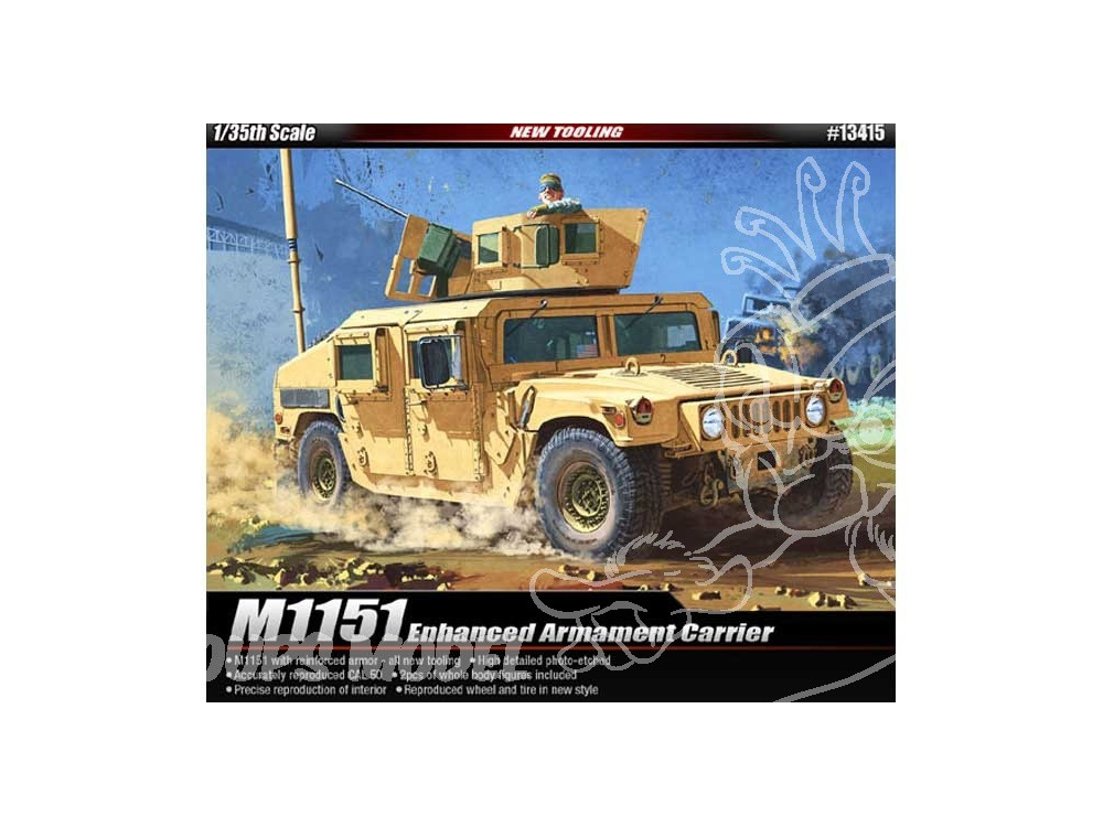 • M1151 avec plaques de blindage renforcées avec Nouveau Moule 2011. Planche de photo découpe incluse. 2 figurines complètes incluses. Reproduction précise et détaillée de l'intérieur du véhicule. Pneus et jantes reproduites dans un nouveau style.