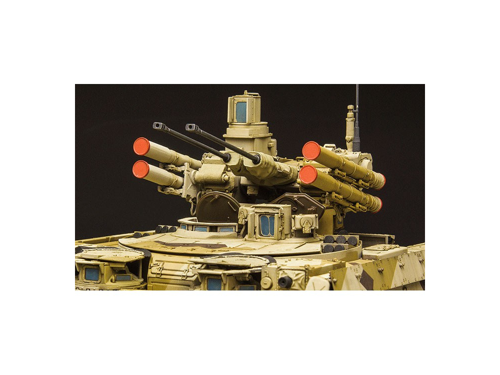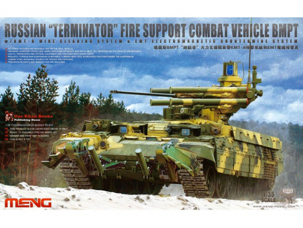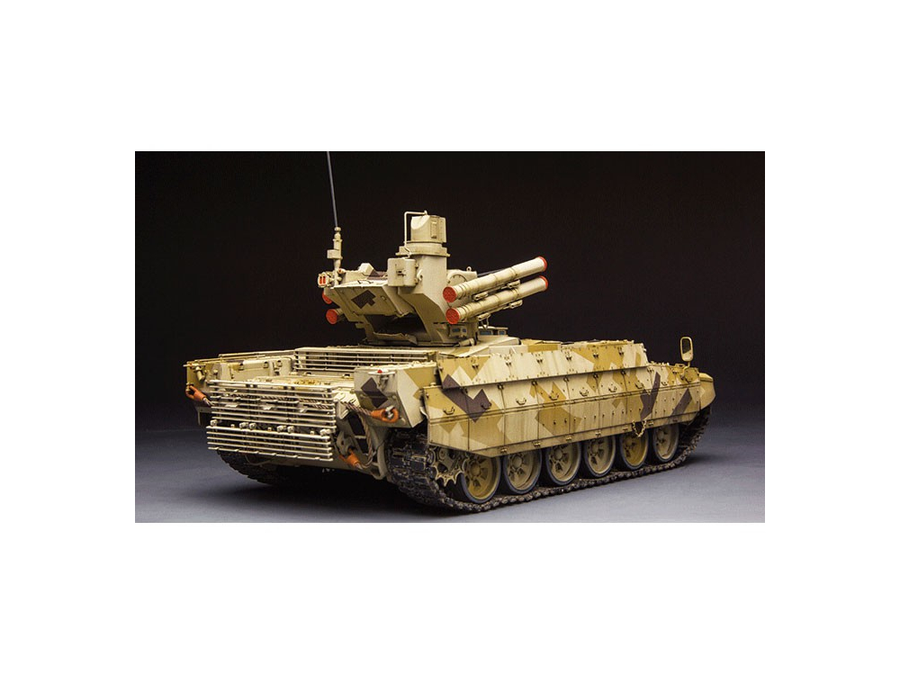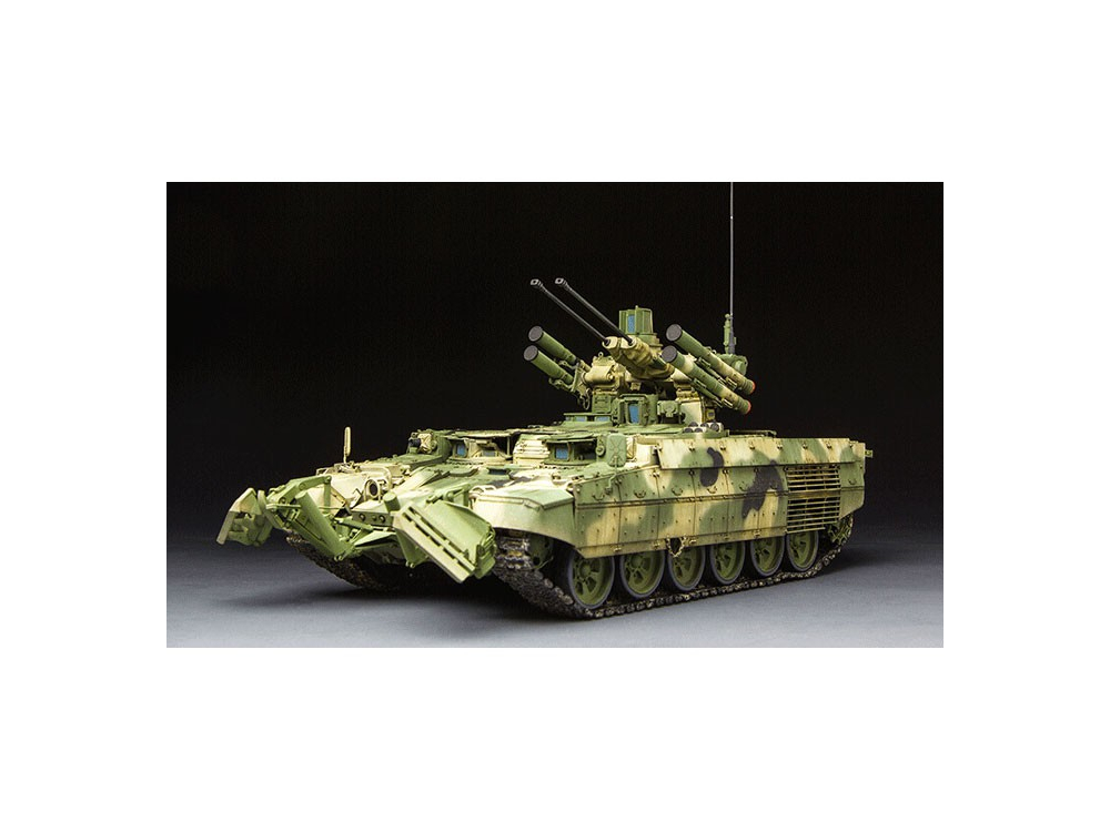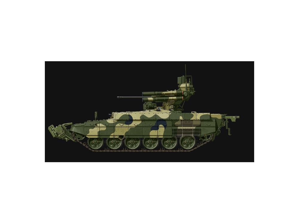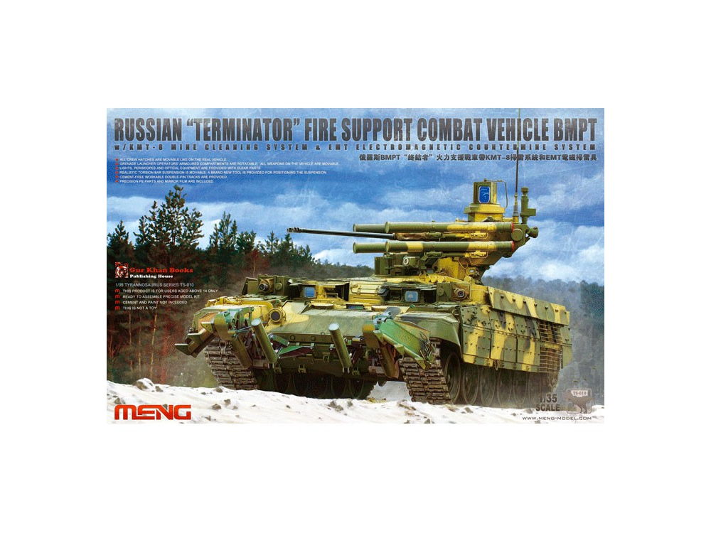 Le BMPT est un véhicule de combat urbain et d’escorte russe basé sur le châssis du char de combat T-72. Présenté en 1997 il est actuellement proposé à l’exportation par la Russie. Son nom signifie: Véhicule de combat de soutien de chars. Le BMPT est le premier blindé destiné uniquement à la protection des unités blindées. Aucun autre véhicule au monde n’est spécifiquement conçu pour assurer ce type de missions. Le système a été conçu dès le départ pour la destruction des principaux ennemis du char de combat : hélicoptère d’attaque et soldats munis d’armes antichars. Pour pouvoir traiter efficacement toutes les menaces du champ de bataille, le BMPT se voit doté de plusieurs systèmes d’armes différents : 2 canons 2A42 de 30 mm, d’une élévation en site de 45 degrés, 1 mitrailleuse PKT de calibre 7,62 mm, 4 missiles 9M120-1 "Ataka" téléguidés, 2 lances-grenades automatiques AGS-17. Étant un véritable « garde du corps » des chars, le BMPT se doit d’avoir un blindage plus performant que ces derniers. Il est composé d’une partie standard plus épaisse, une couche réactive passive NERA, d’une couche intérieure de tissu de type Kevlar afin de stopper d’éventuels schrapnels et de plaque de protections réactives ERA disposées de part et d’autre du véhicule. Ainsi, le BMPT est parfaitement apte à résister aux différentes armes que peut lui opposer l’ennemi (missile antichar, lance-roquettes, mine terrestre, munition anti-blindage). Le BMPT est littéralement bardé d’instruments de visée, il comprend, pour le tireur, un télémètre, un viseur laser et un système d’observation à mode de fonctionnement diurne, nocturne et par mauvais temps. Le commandant possède son propre système d’observation et de visée monté sur la tourelle.