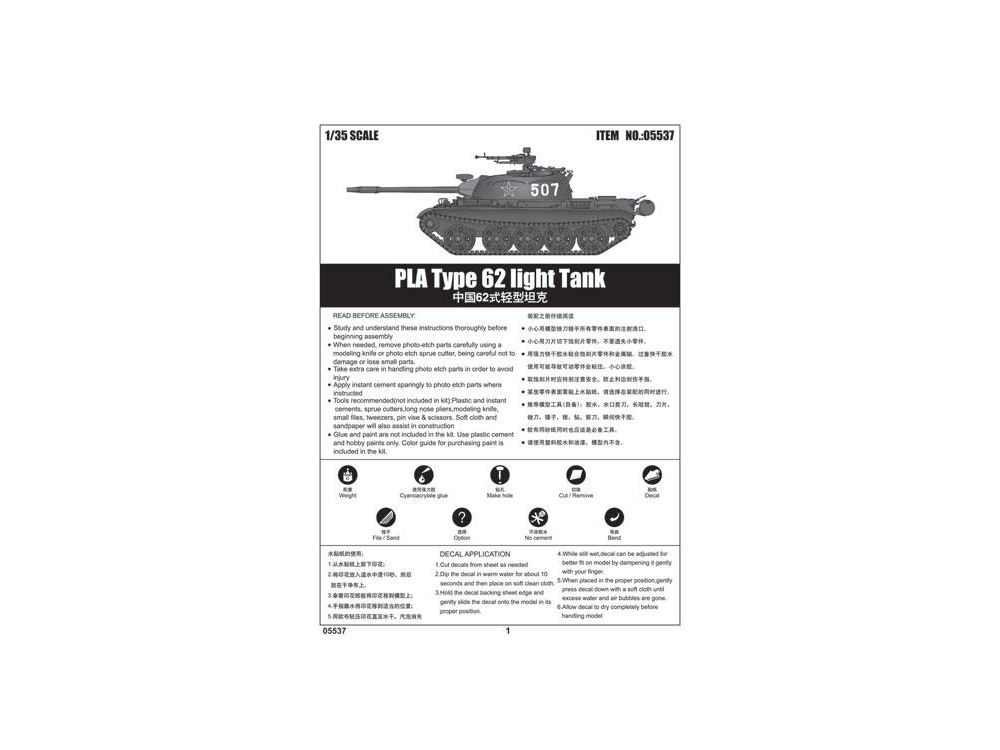 Trumpeter maquette militaire 05537 TYPE 62 CHAR MOYEN ARMÉE CHINOISE 1/35