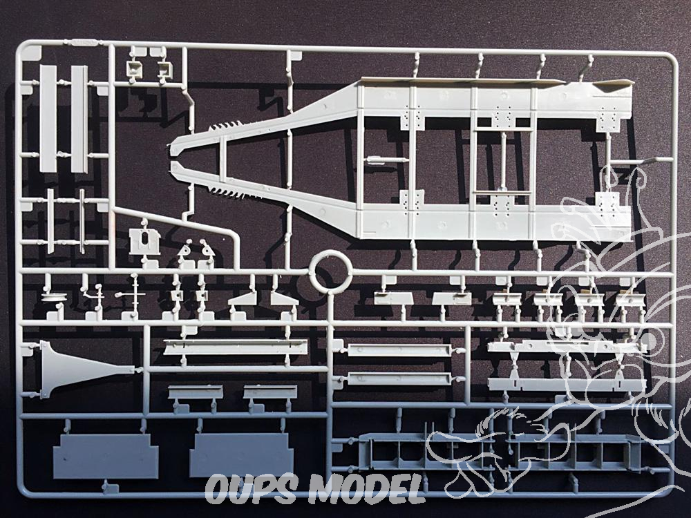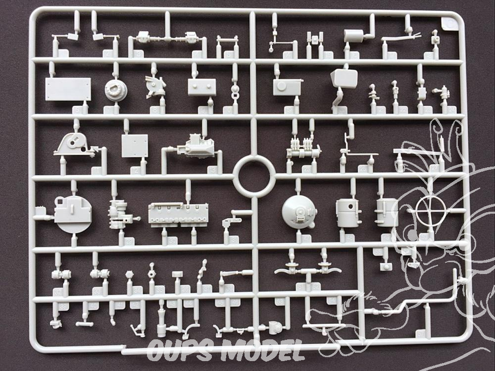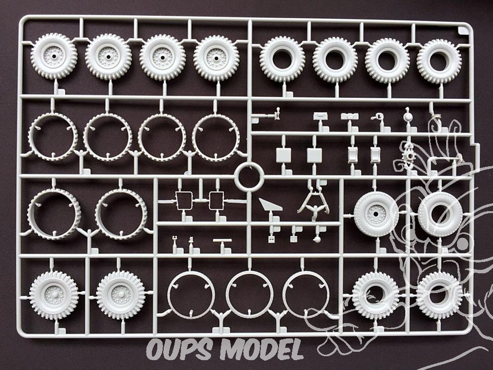 TRMU30 / TRCU30 tracteur - 590+ pièces en plastique, avec glissière et détails moulés par glissement latéral (14 grappes en gris, 1 parties claires) - Châssis, treuil et remorque fidèlement reproduits et très détaillés - moteur, cabine et intérieur moulés avec précision, avec des détails et une forme correctement dimensionnés - des pneus moulés en plastique avec un motif correct tel que documenté dans les photos d'époque - toutes les portes et fenêtres peuvent être ouvertes ou fermées, les roues et les bogies arrière peuvent tourner et pivoter - Feuille de détails PE, chaînes graduées et cordes incluses