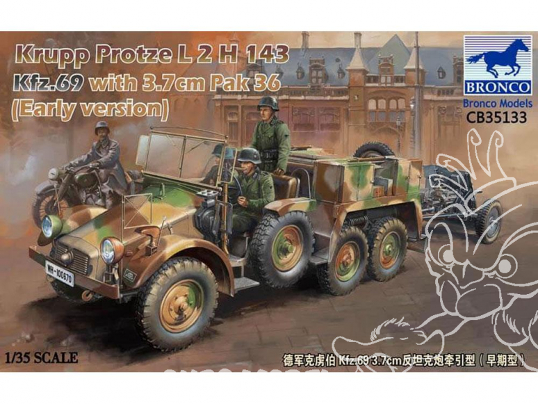Bronco maquette militaire CB35133 KRUPP PROTZE Kfz.69 L2H 143 avec CANON ANTI CHAR 3.7cm Pak 36 (début de prod.) 1941 1/35
