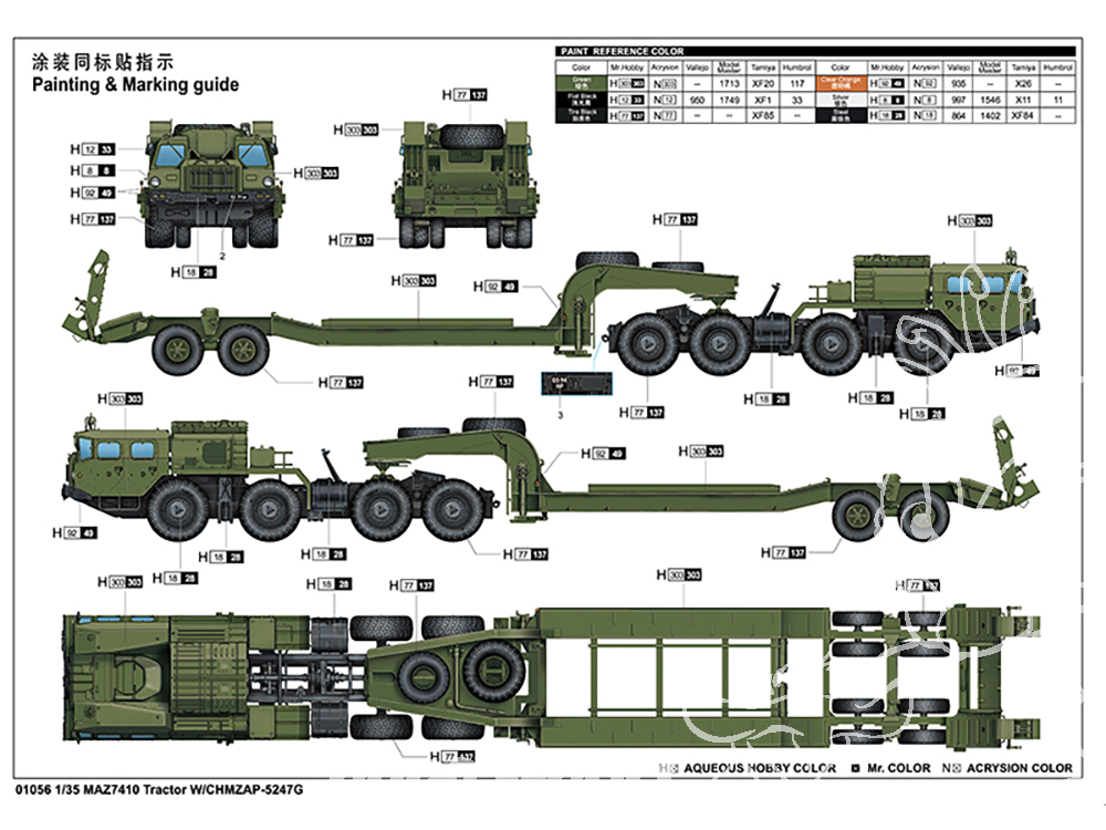 TRUMPETER maquette militaire 01056 Tracteur MAZ-7410 avec remorque CHMZAP-5247G 1/35