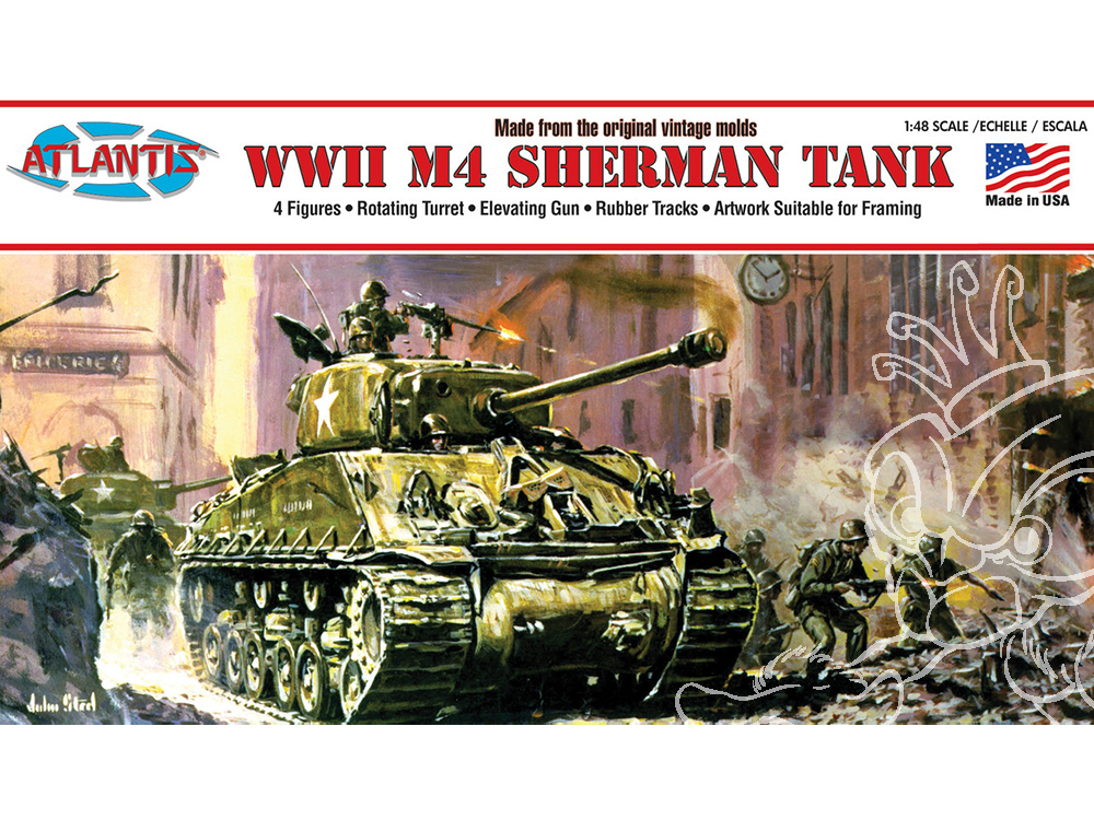 Atlantis maquette militaire A317 Char moyen M4 Sherman de la Seconde Guerre mondiale avec quatre figurines 1/48