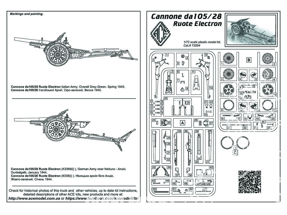 Ace Maquettes Militaire 72594 Cannone da105/28 Ruote Electron 1/72