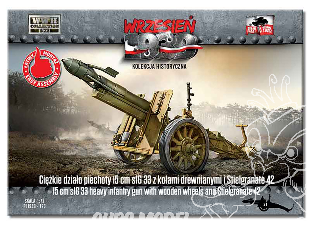 First to Fight maquette militaire pl123 Canon d'infanterie lourd sIG 33 de 15 cm avec roues en bois et Stielgranate 42. 1/72