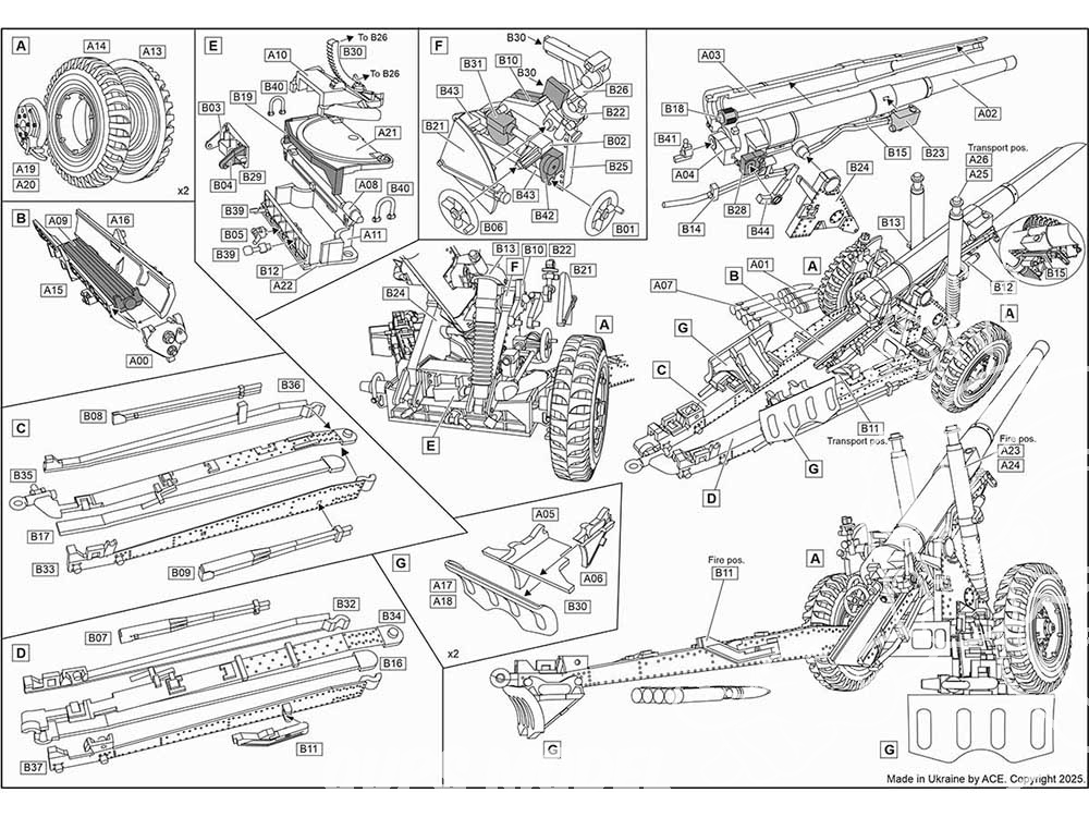 Ace Maquettes Militaire 72607 Artillerie B.L. canon de campagne moyen de 4,5 pouces Mk.2 sur affût de 5,5 pouces Mk.2 1/72