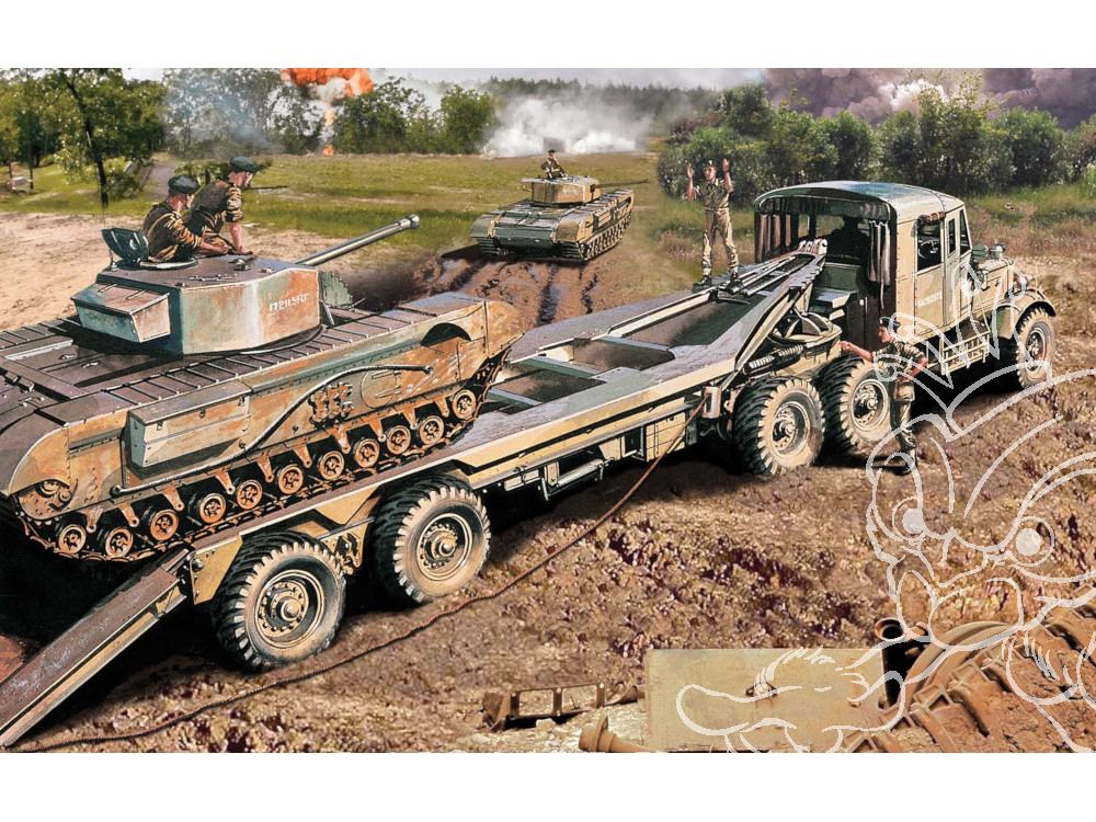 L'armée britannique utiliserait le Scammell Pioneer Tank Transporter pour de nombreuses utilisations pendant la guerre. La remorque était fixé au tracteur et non démontable comme les semi-remorques modernes. Des rampes à charnières ont été utilisées pour amener le char sur la remorque qui, si immobilisé, pouvait être tiré avec le treuil du tracteur.