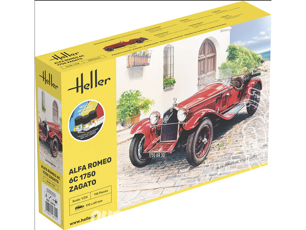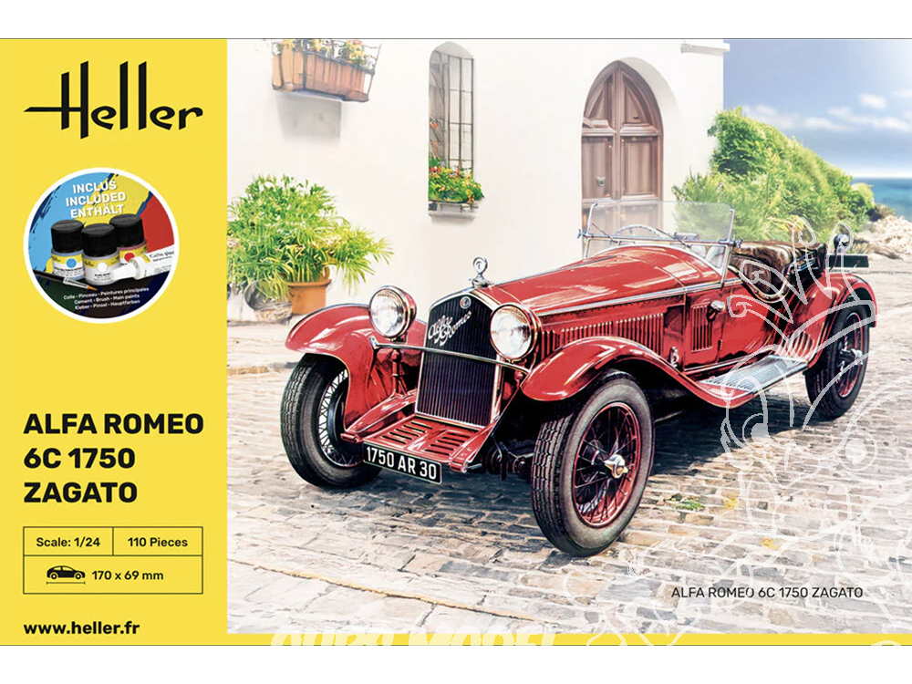 STARTER KIT Alfa Romeo 6C 1750 Zagato inclus peintures principale colle et pinceau 1/24