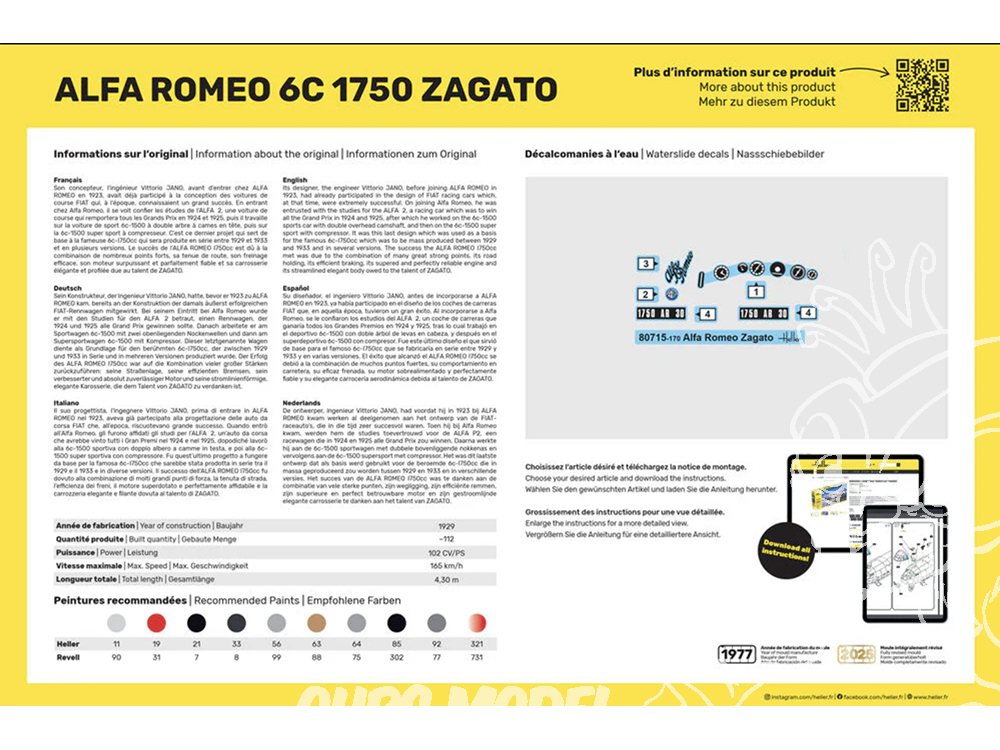 Heller maquette voiture 56715 STARTER KIT Alfa Romeo 6C 1750 Zagato inclus peintures principale colle et pinceau 1/24