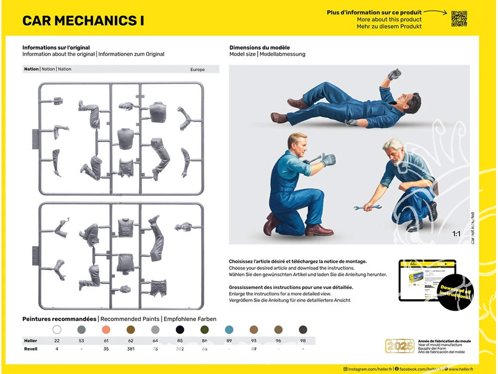 Heller maquette voiture 58755 STARTER KIT Mécaniciens automobile inclus peintures principale colle et pinceau 1/24