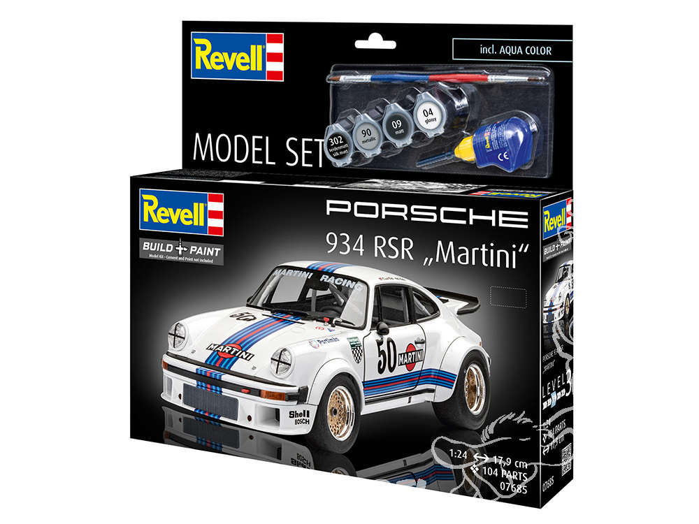 Revell maquette 67685 Model Set Maquette Porsche 934 RSR Martini avec peinture et accessoires de bas 1/24