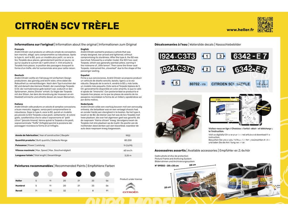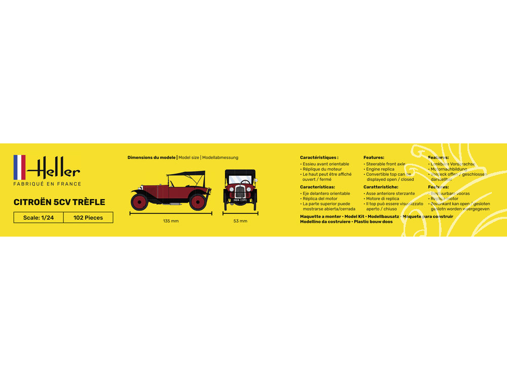 Heller maquette voiture 56702 STARTER KIT Citroen Trefle 5CV inclus peintures principale colle et pinceau 1/24